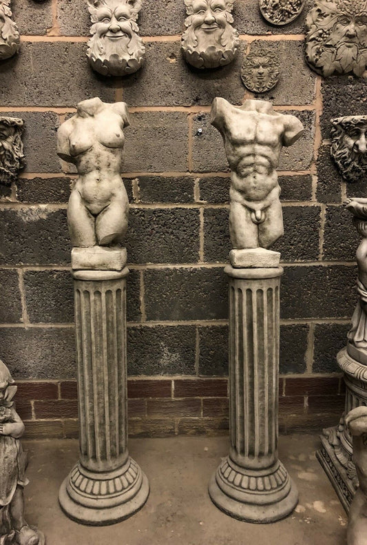 Stone Torso Statues for Gardens with Grecian Plinths