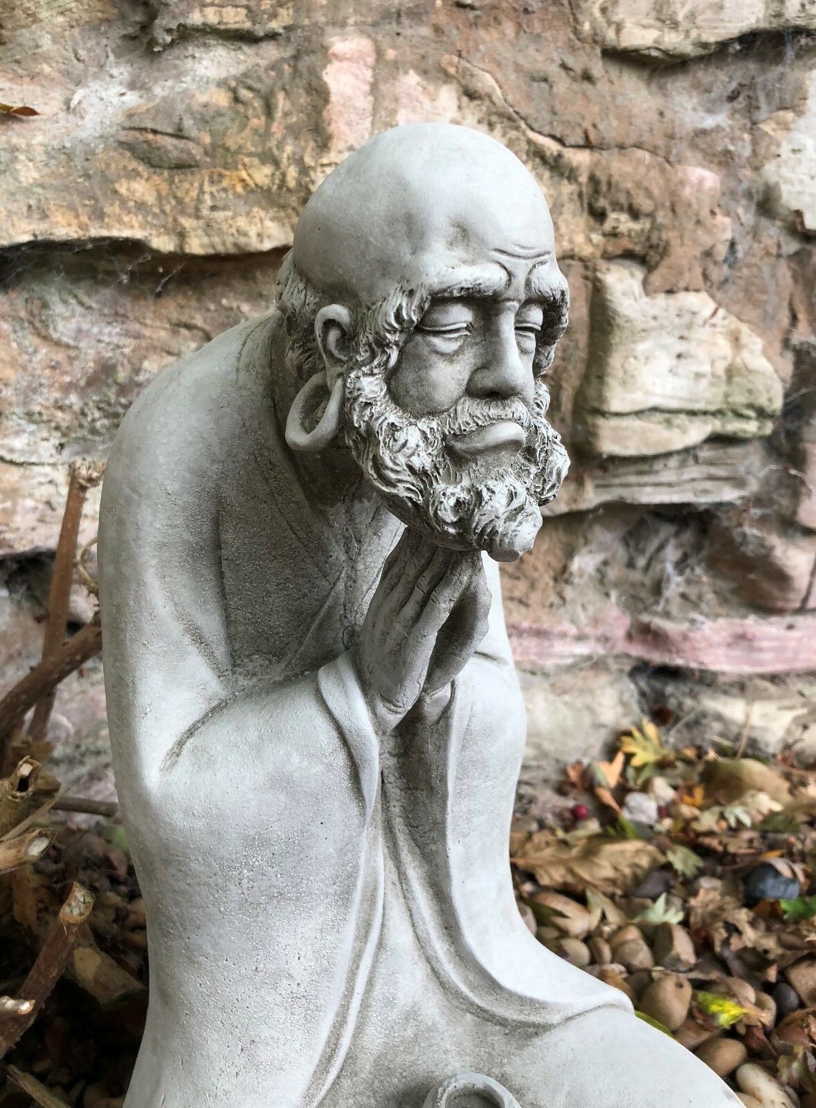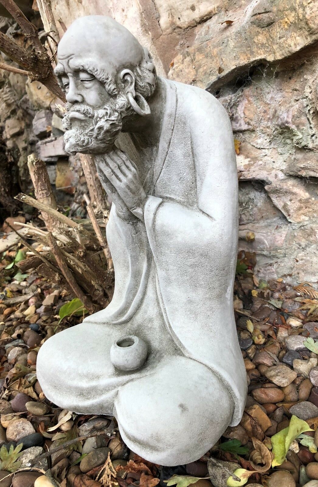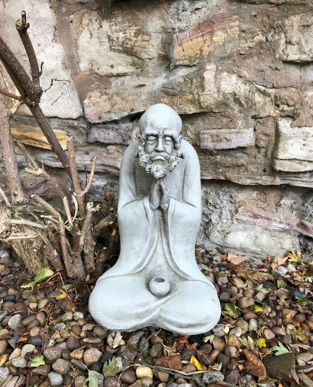 Stunning Stone Praying Old Monk Sculpture Garden Ornament